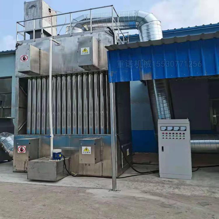 二、脈沖除塵器的工作原理:主要由上箱、中箱、灰斗、進氣均壓管、支撐濾袋及噴射裝置、卸灰裝置等組成,含塵氣體從除塵器進氣均壓管進入各倉灰斗。在灰斗導向裝置的引導下,大顆粒粉塵分離后直接落入灰斗,細顆粒粉塵均勻進入中間箱體,吸附在濾袋外表面,潔凈氣體滲透濾袋進入上箱體。并通過各離線閥和排氣管排入大氣。隨著過濾條件的改善,濾袋上的粉塵會越來越多地積聚起來。當設備電阻達到*限電阻值(一般設定為1500pa)時,除塵控制裝置根據壓差整定值或除塵時間整定值自徹